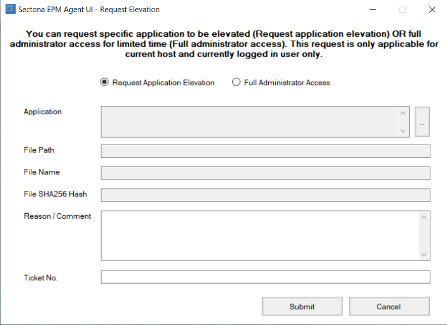 Request for Elevation is used in case of admin rights elevation is not accessible.