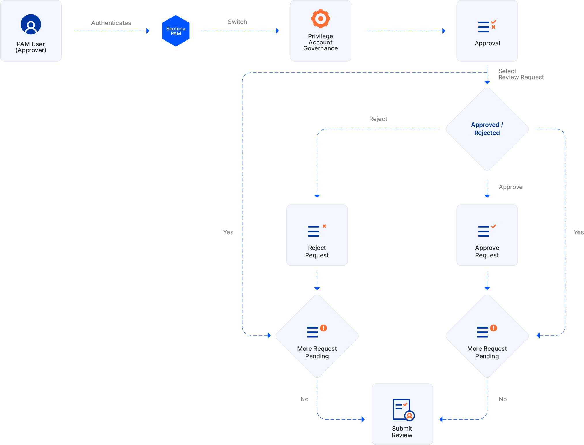 Approver/PAG Administrator who is responsible for ensuring that suitable access is provided to all the users and accounts present in the system evaluates the request by reviewing it and submits the review by approving/rejecting the request. If any review is rejected, the approval request is sent to the operational manager for further process. Meanwhile, the status of the request to the requester is shown as “Pending for Operations.”