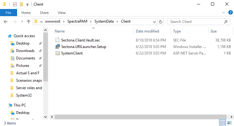 Copy the Sectona.Client.Vault.sec in jump host server in the C:/ directory. Rename the file and add a .zip extension. Extract the zip file and name the folder as Sectona.Client.Vault.sec.