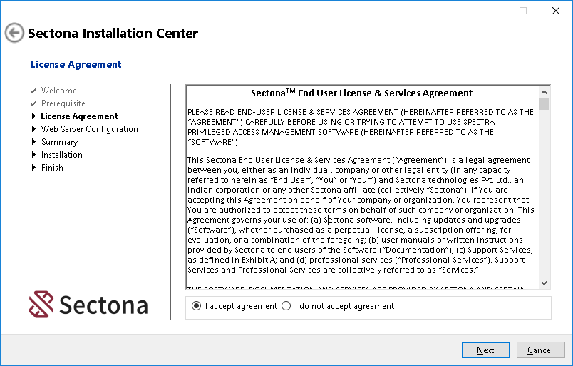 Review License Agreement page and click on the I accept button to accept the license agreement. Click on Next to continue.