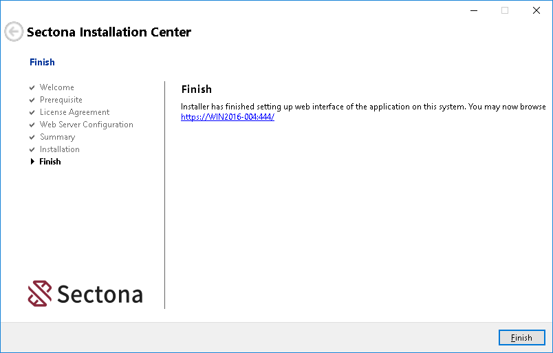 After successful installation, click on the Finish button to exit. You can also browse the web-page for Satellite Vault login by clicking on the link displayed on the screen. Click on the URL to get access to the Satellite Vault.