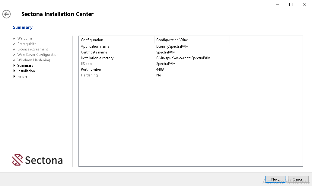 Click on Next to continue. Verify the configured Summary and click on Next to continue.