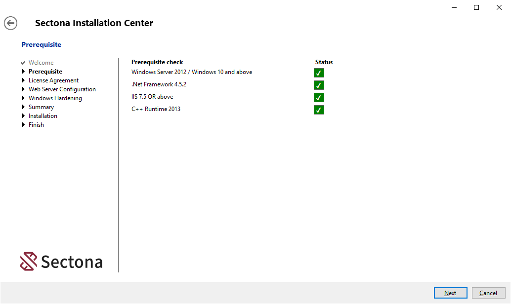 The setting up of Sectona Web access requires setting up a web server and installation of the Sectona Web Access component.