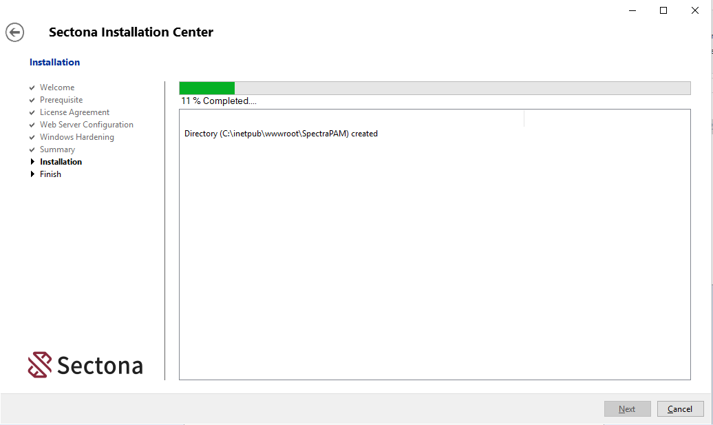 • Once the Vault component is successfully installed on the DR node, run the Sectona web access installer again on the node you are trying to configure as DR instance in Sectona. When installing Sectona web access use the 'Application Only' option from the installer and complete the installation.