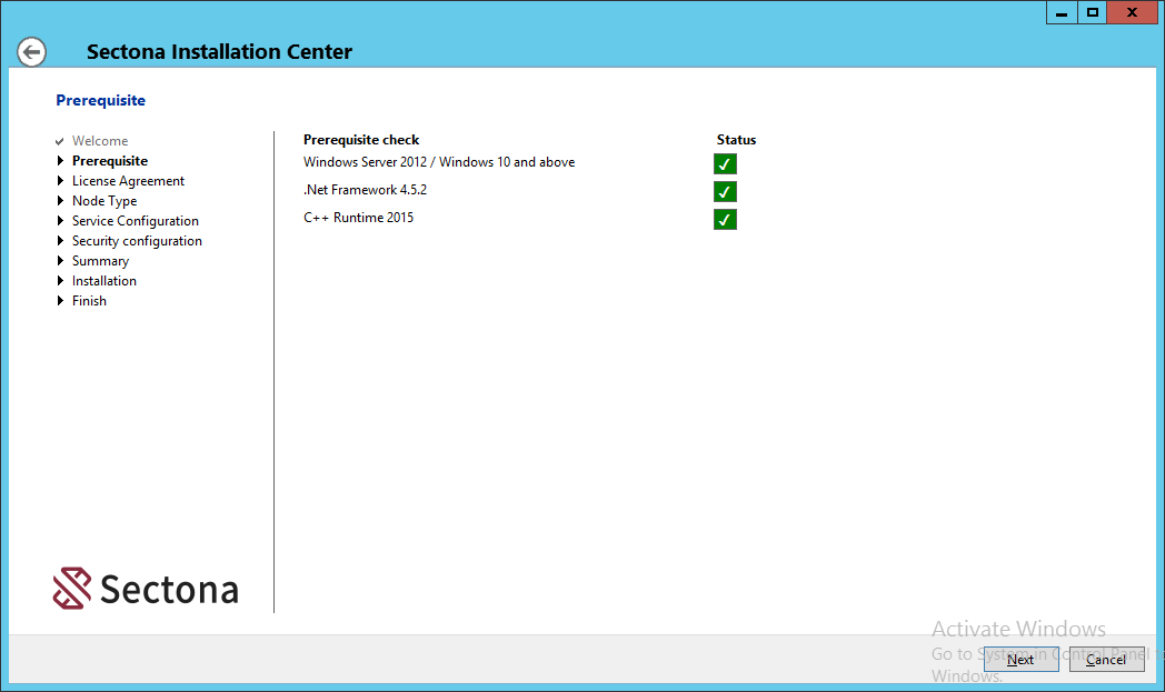 Validate your prerequisites and click on Next to continue.