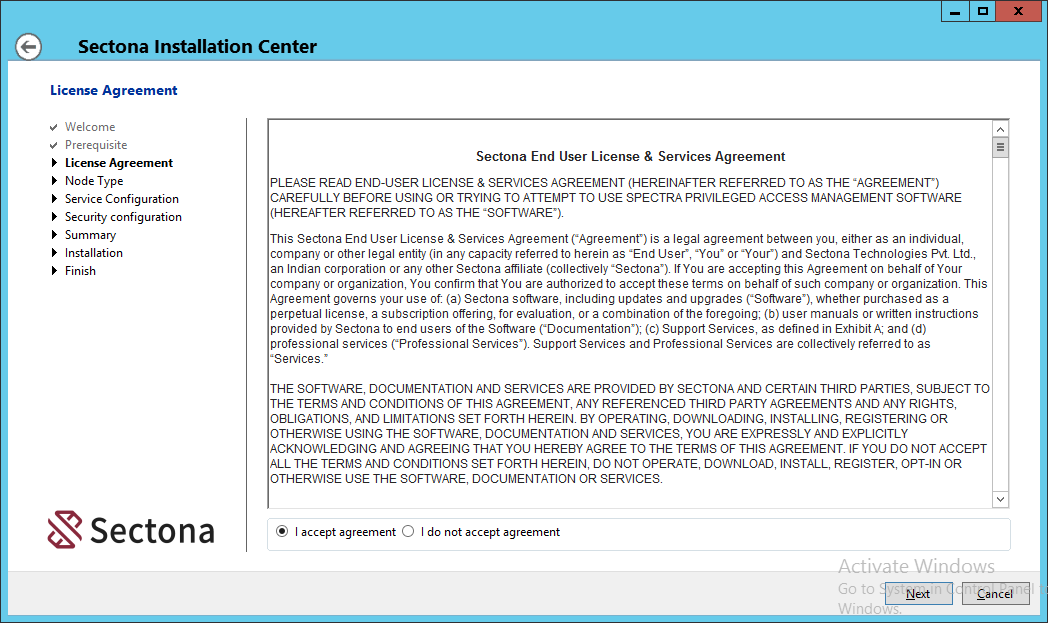 Download the Sectona Password Vault Installer. You will receive a copy of installation from Professional Services team and download from the download portal