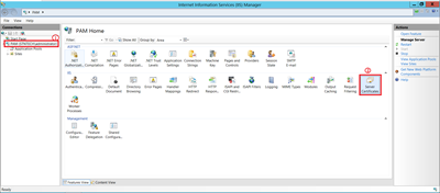 Click on the IIS server → double click on Server Certificates to open Server Certificates wizard: