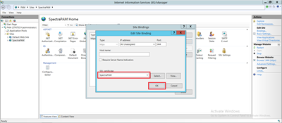 Select the certificate from drop-down → click on it to save the configuration → close the site bindings window: