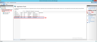 Click on Application Pools → Select SpectraPAM pool → click on stop and then start to restart the Sectona application pool to apply the changes: