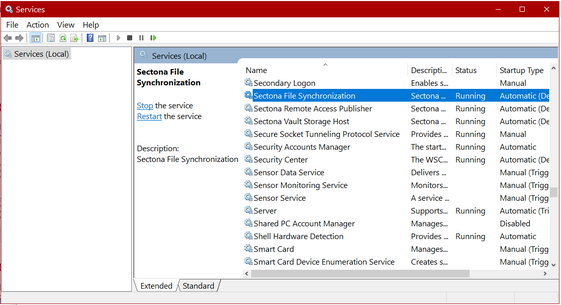 After saving the configuration, restart the Sectona File Synchronization service to enable the Sectona File Synchronization configuration. To restart the service follow the steps below: