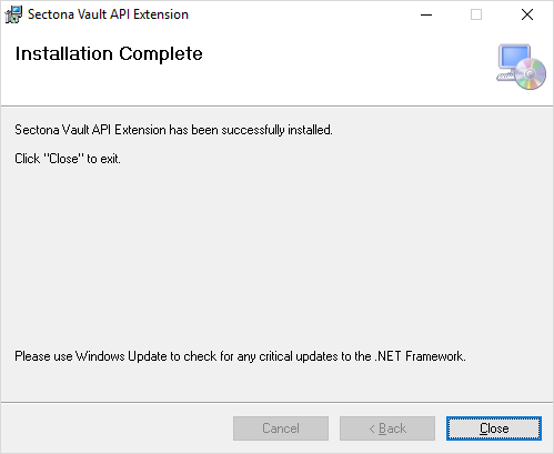 Click on the MSI file named Sectona.Vault.APIExtension.Setup.msi then the following screen will appear: