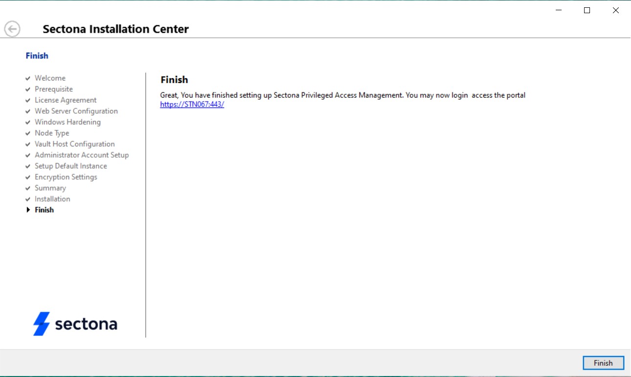If you have purchased the enterprise edition or are using an evaluation version, please complete Sectona Vault installation by following steps given for embedded database