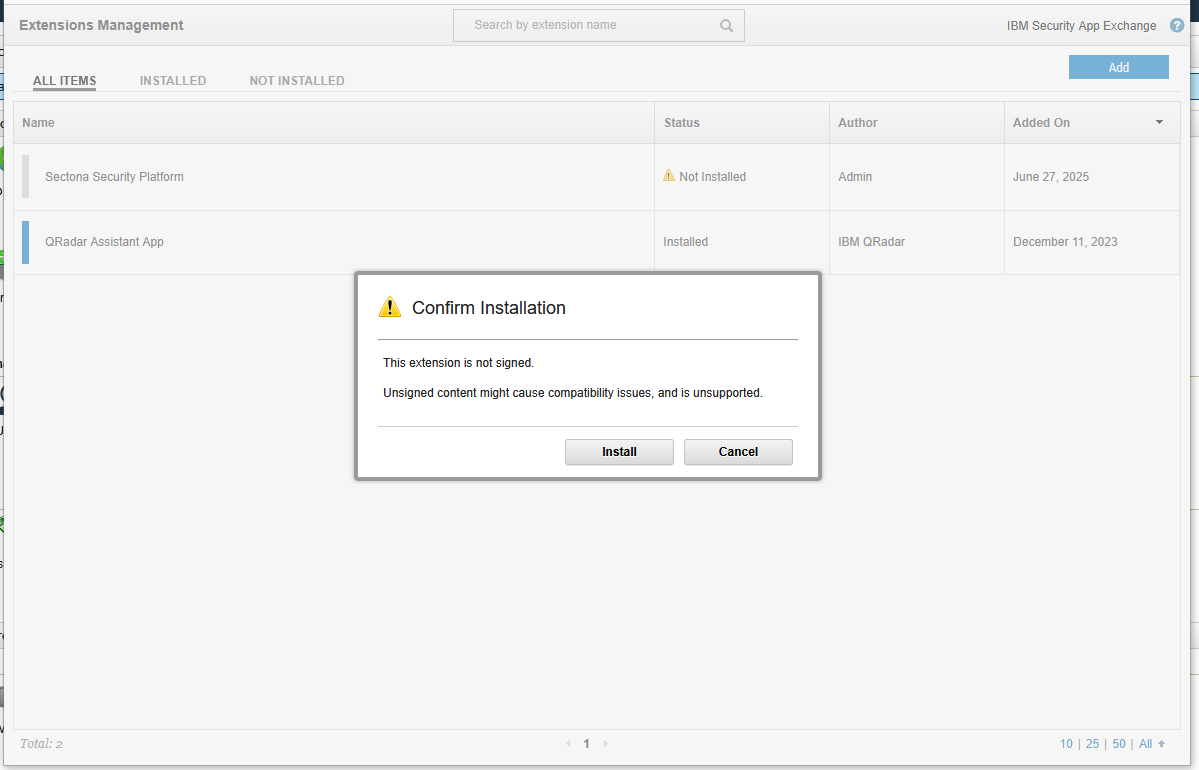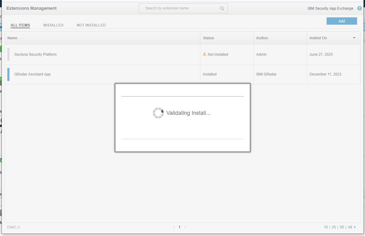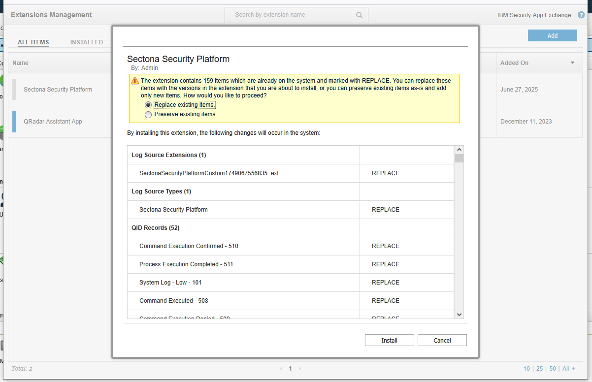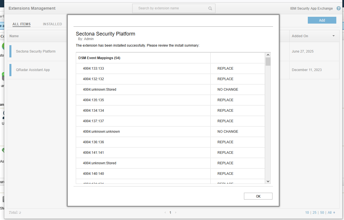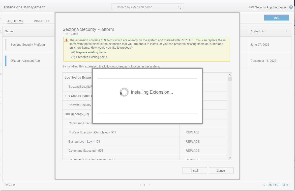 Sectona Security Platform can be integrated with IBM QRadar using syslog message forwarding. The following steps helps to configure Sectona Security Platform as a log source type with the help of Extension Management in IBM QRadar.
