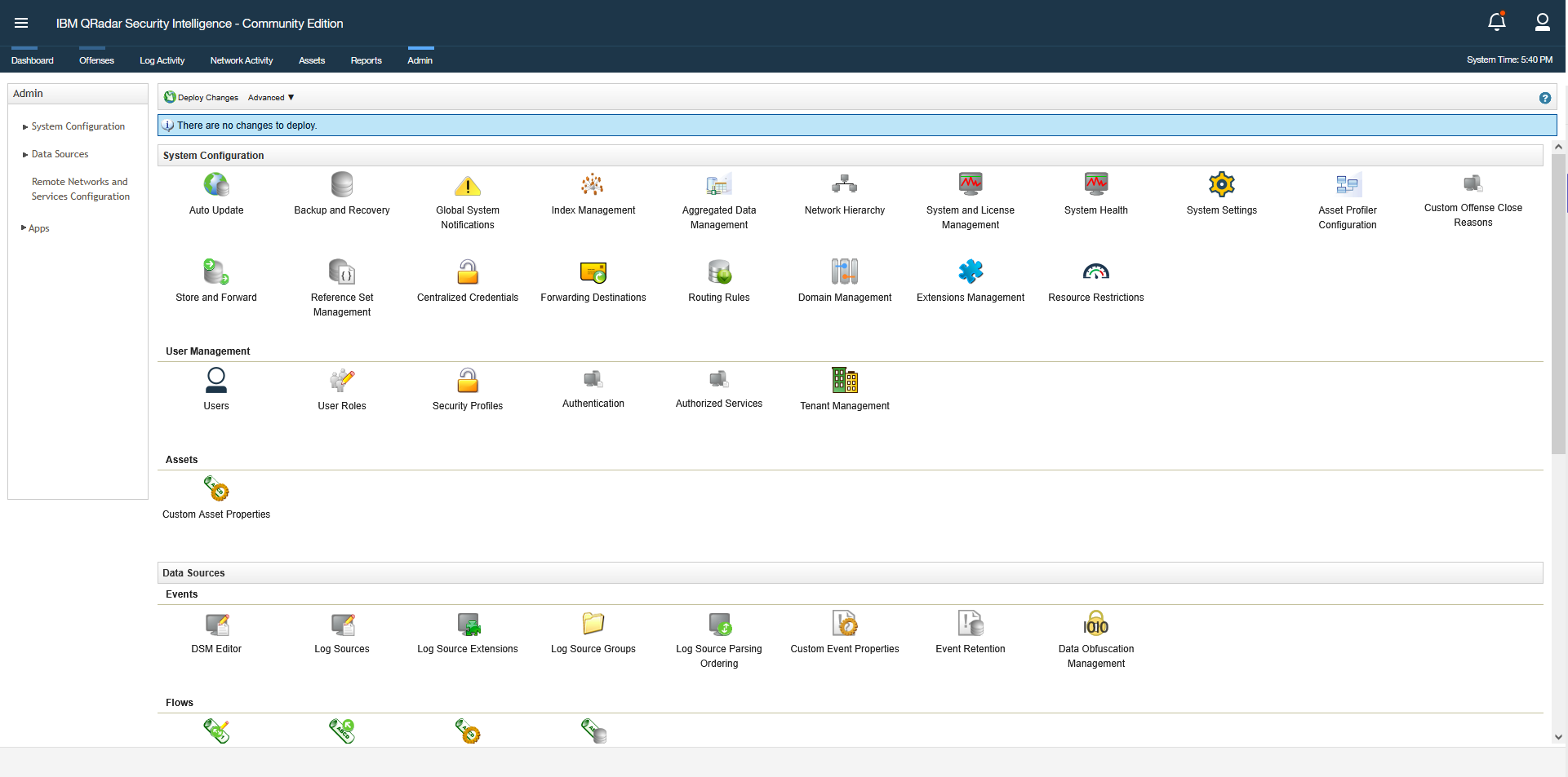 Switch to the Admin tab in IBM QRadar Security Intelligence platform.
