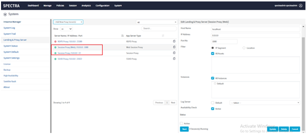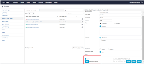 Go to Systems > Landing and Proxy Server >and select Session Proxy (Web)and Session Proxy one by one and click on the Start button and update.