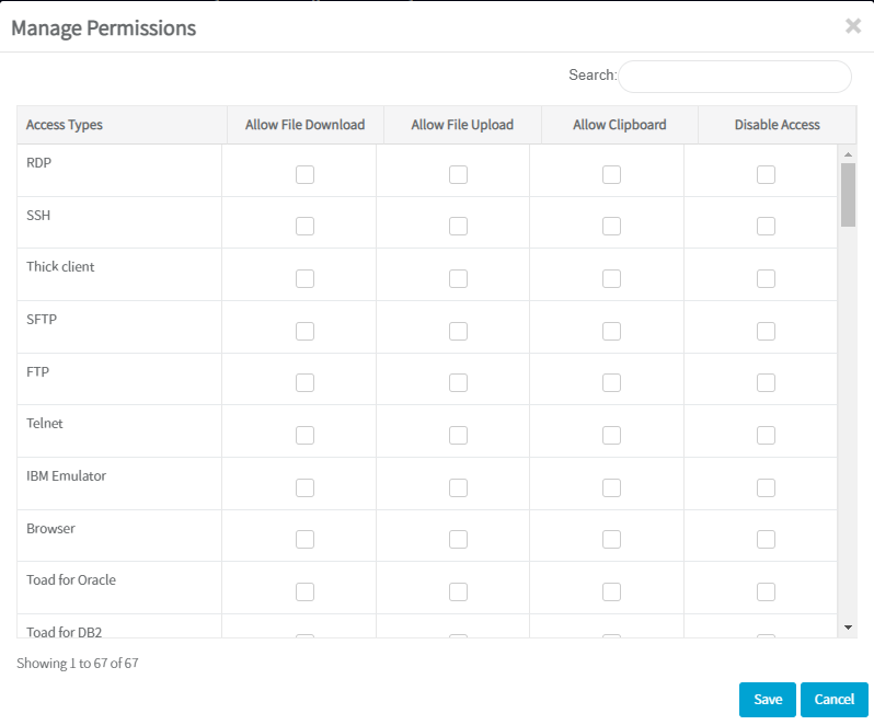 To enable the File sharing and Clipboard Select the respective Access Type and click on Allow File Download/ Allow File Upload/ Allow Clipboard