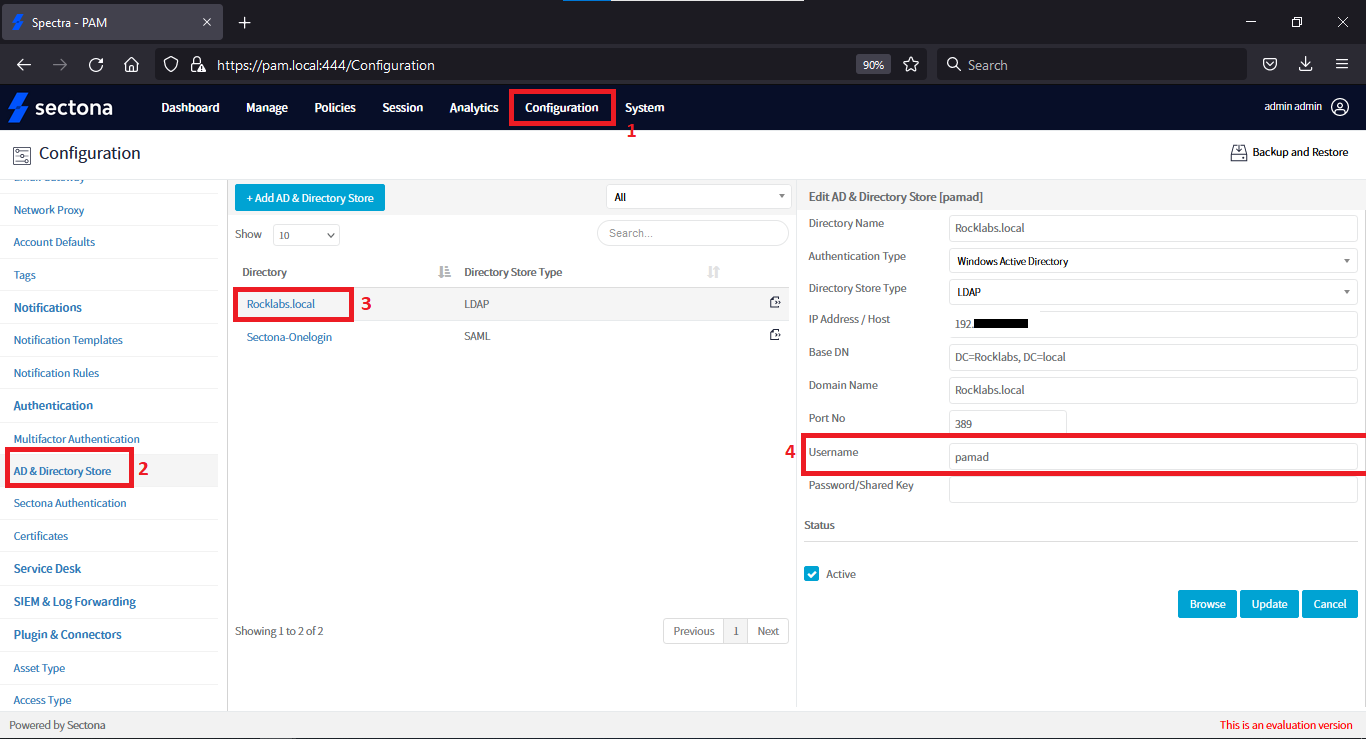 Go to Configuration > AD & Directory Store > Click on the Domain Name to open the configuration