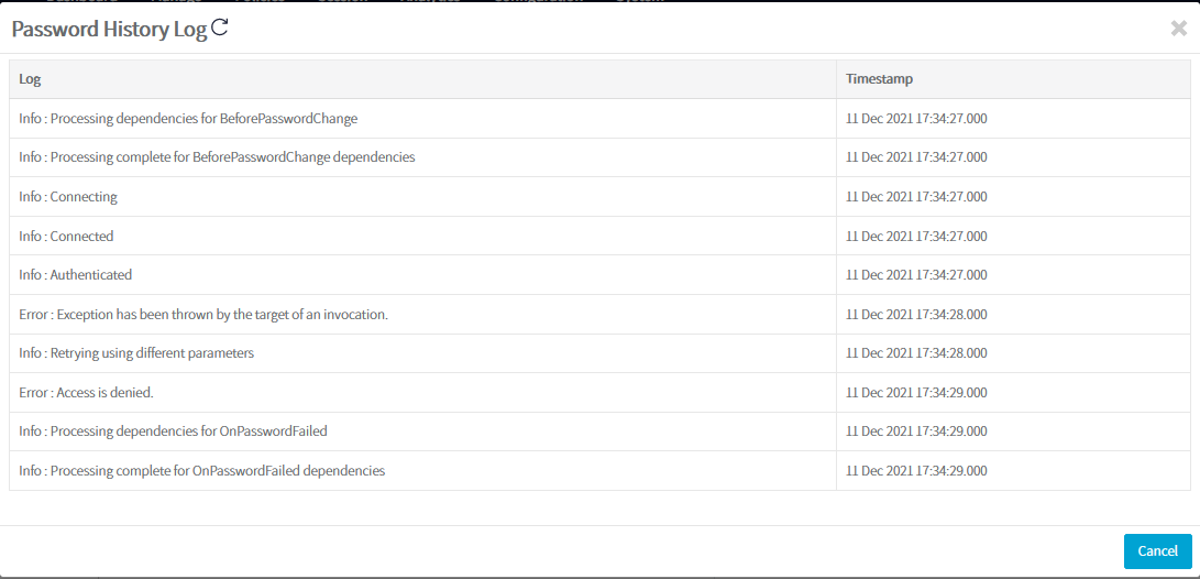 This error occurs when the required permission for Windows AD account password change are not provided on the AD management User as per per-requisites.